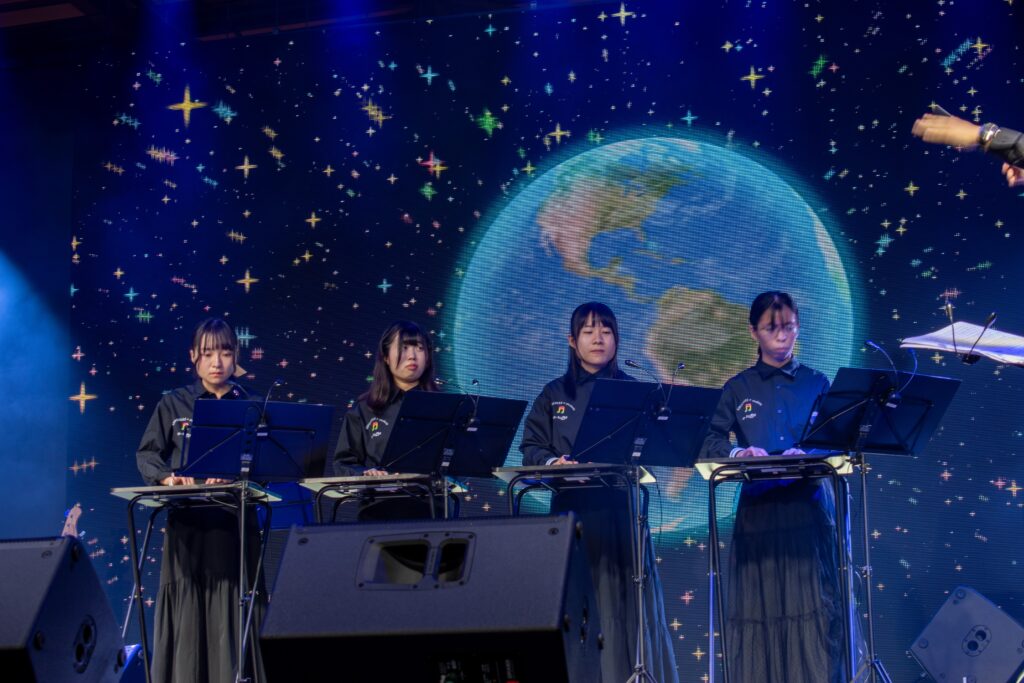 また、大阪音楽大学や関西学院大学の学生、大阪大学の留学生などと一緒に、大阪・関西万博のテーマソングである「この地球の続きを」や「The Greatest Showman Medley」も演奏しました。そして、イベントの最後には、会場にいる全員で「We Are the World」を合唱しました。観客を含む全員がともに音楽を奏で、会場全体が一つになりました。